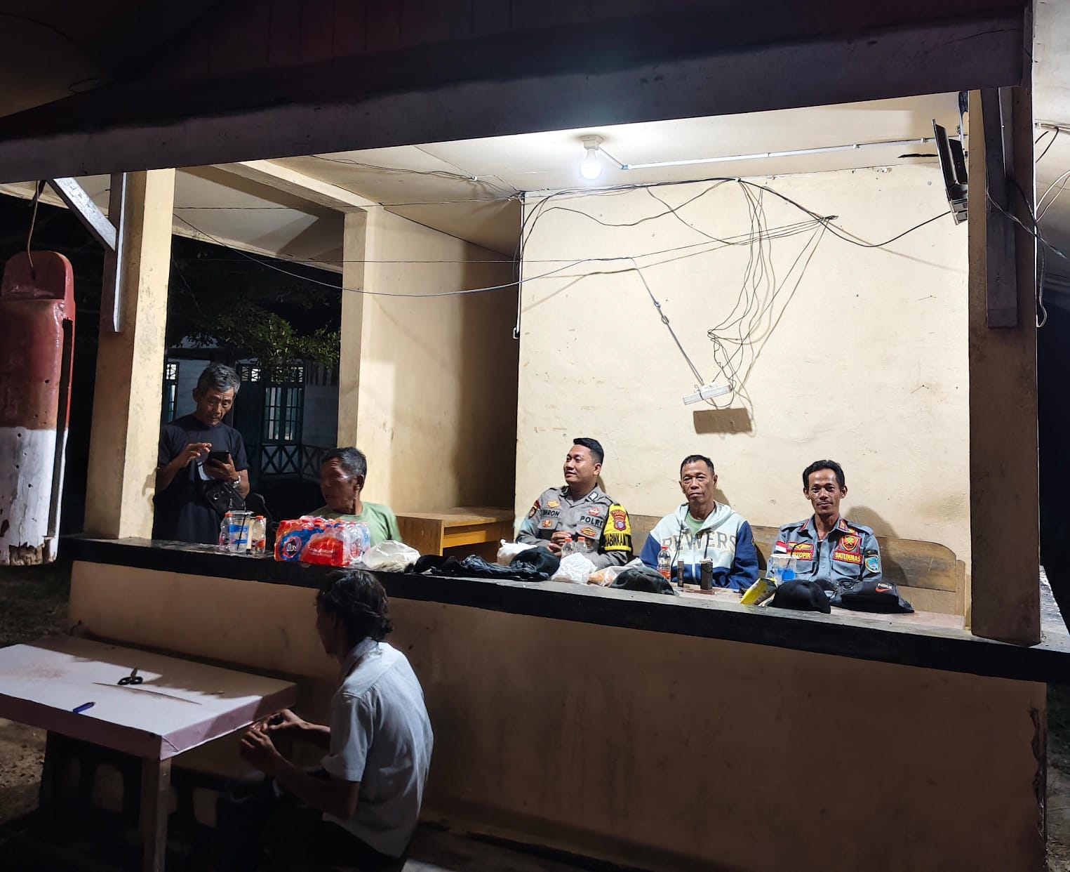 Polres lamandau – Bhabinkamtibmas Brigpol Imron Rasyidi Polsek Sematu Jaya, Menyambangi Piket jaga sat kamling desa Modang Mas, kec. Menthobi Raya Kab.Lamandau, Prov. Kalteng yang sedang jaga pos kampling, Selasa (23/9/25) malam.