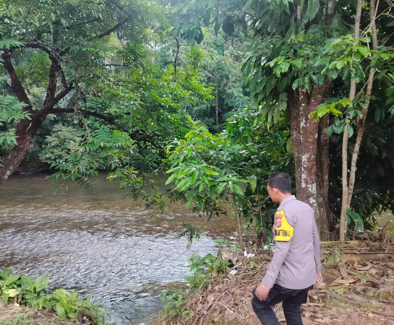 Polres Lamandau – Polsek Delang, Piket Polsek Delang melakukan kegiatan rutin pengecekan debit air DAS Delang di TMA Kelurahan Kudangan RT.02 Kecamatan Delang, Selasa (23/9/25) Malam