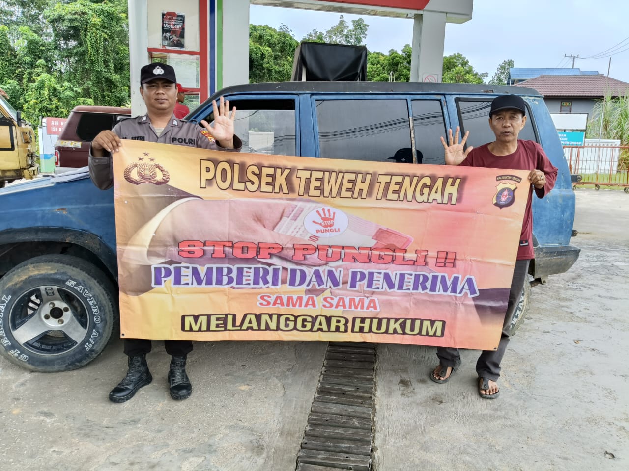 Kapolres Barut AKBP Singgih Febiyanto, S.H., S.I.K. melalui Kapolsek Teweh Tengah KOMPOL Wahyu Satiyo Budiarjo, S.H., M.H. mengatakan anggota Polsek Teweh Tengah dengan humanis memberikan pemahaman dan edukasi kepada masyarakat untuk bersama-sama memberantas aktivitas pungutan liar serta mengedukasi bahwa pemberi dan penerima sama-sama melanggar hukum dan akan dikenakan sanksi Pidana.” Jum’at (26/09/2025) Pagi mulai Pukul 09:30 WIB.