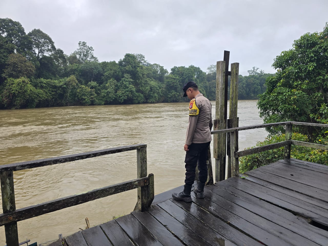 Polres Lamandau – Personel Polsek Lamandau Melaksanakan Patroli dan Pantau Cek debit air Sungai Lamandau Antisipasi terjadinya Bencana banjir di Wilayah Kabupaten Lamandau Khususnya Kecamatan Lamandau yang bertempat di Dermaga Tapin Bini, kecamatan Lamandau, Kabupaten Lamandau, Provinsi Kalteng, Selasa (30/9/25) Pagi.