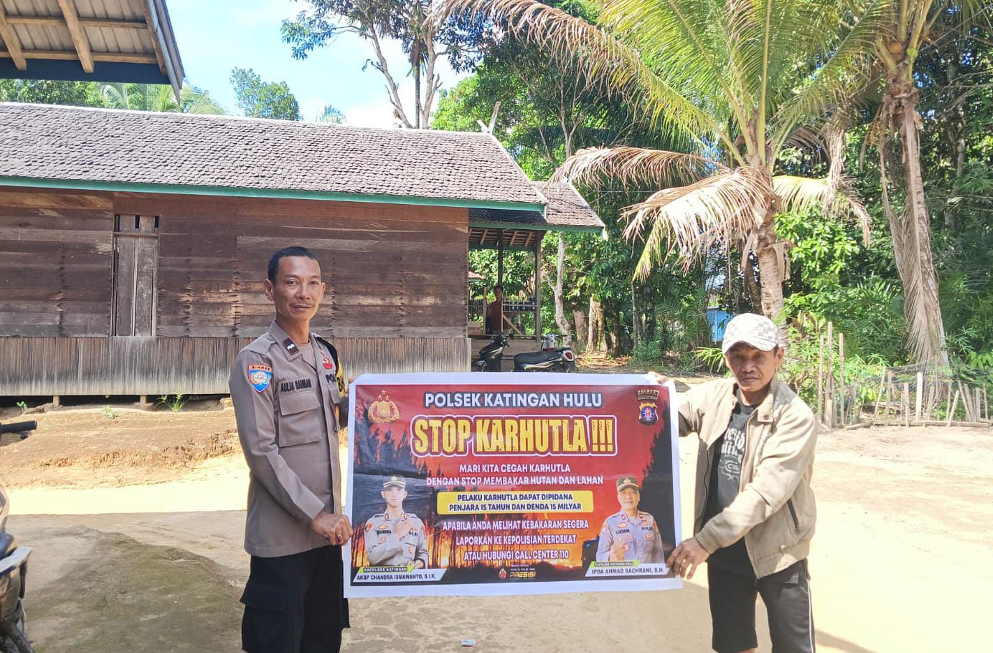 Polres Katingan – Salah satu cara Polsek Katingan Hulu, Polres Katingan, Polda Kalimantan Tengah dalam menangani Dampak KARHUTLA, Bhabinkamtibmas Aulia Rahman polsek Katingan Hulu melaksanakan Sosialisasi STOP!!! KEJAHATAN TERHADAP LINGKUNGAN “DILARANG MEMBAKAR HUTAN DAN LAHAN DI WILKUM POLSEK KATINGAN HULU kepada masyarakat Desa Tumbang Hangei II Kec Katingan Hulu, Kab. Katingan kegiatan,Rabu (01/10/2025) pagi.