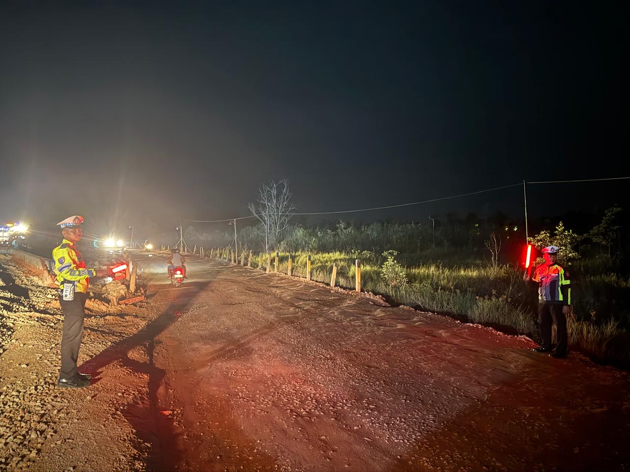 Nampak dalam kegiatan tersebut Personil Piket Satlantas Polres Katingan memberikan isyarat kepada pengguna jalan saat melintas jalan tersebut agar menurunkan laju saat melintas jalan tersebut karena kondisi jalan yang merupakan tikungan serta rawan terjadinya kecelakaan.