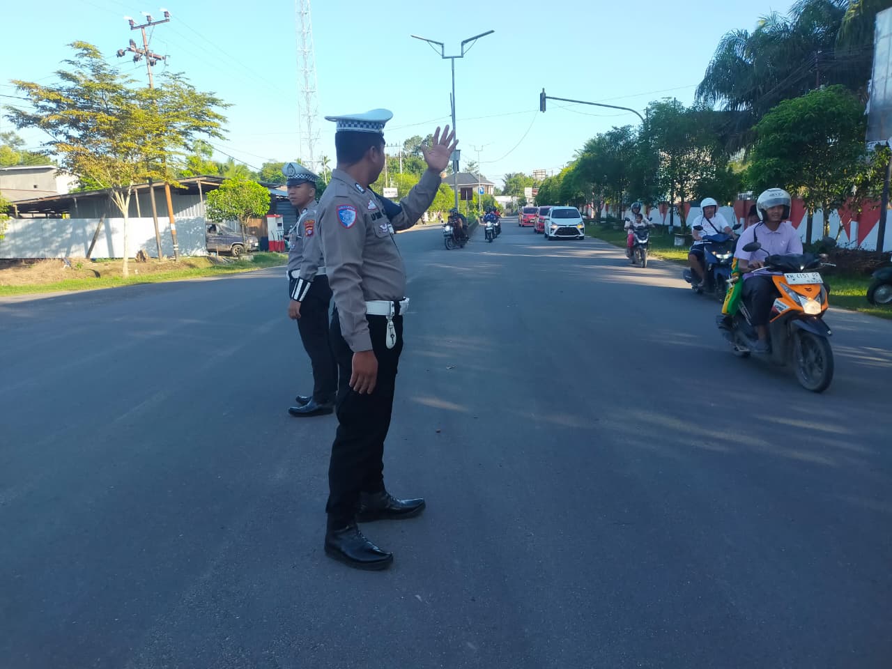 Satuan Lantas Polres lamandau Laksanakan Pengaturan Lalin Pada Pagi hari