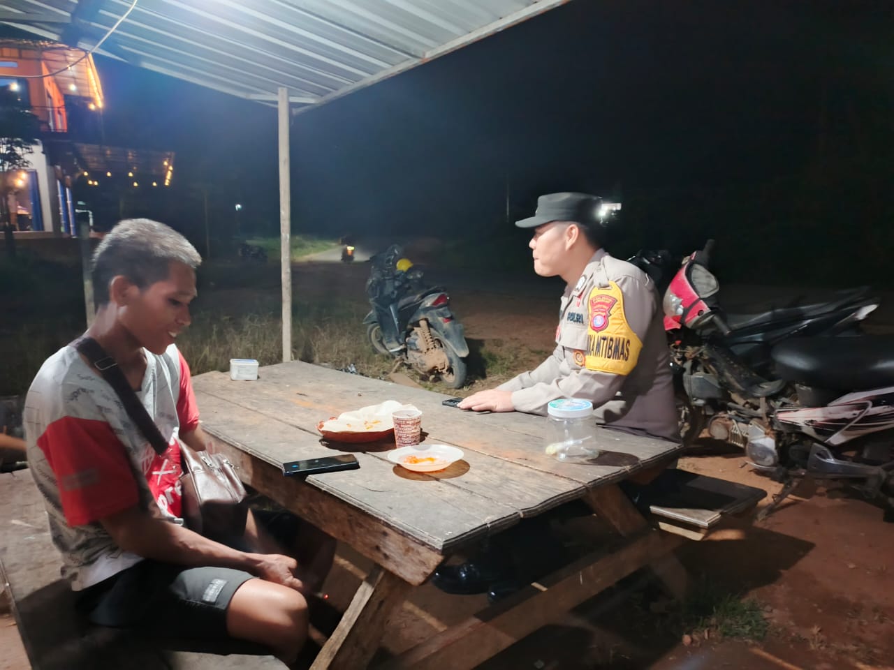 Polres Lamandau – Piket Polsek lamandau melakukan kegiatan sambang kerumah-rumah masyarakat dan tempat berkumpulnya masyarakat di Wilkum Polsek lamandau Kecamatan lamandau, Sabtu (4/10/25) Malam.