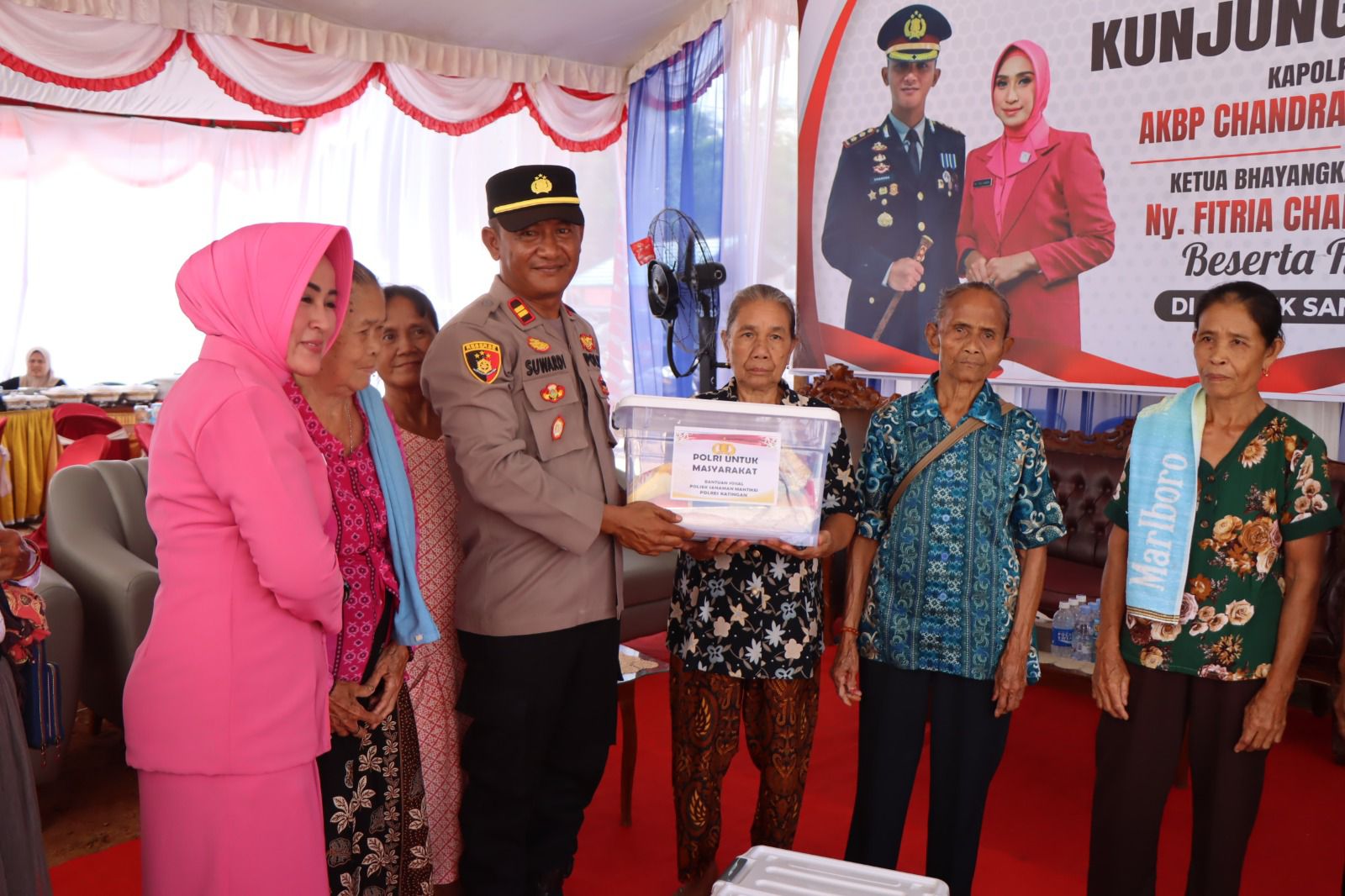 Dalam kegiatan tersebut, Kapolres menyerahkan sejumlah bantuan sosial kepada warga. Bantuan yang diberikan antara lain berupa 10 paket sembako untuk masyarakat umum dan 10 paket khusus untuk masyarakat dengan balita atau anak stunting (gagal tumbuh kembang). Selain itu, digelar pula pasar murah yang menyediakan 100 karung beras SPHP ukuran 5 kg, membantu warga mendapatkan kebutuhan pokok dengan harga terjangkau.
