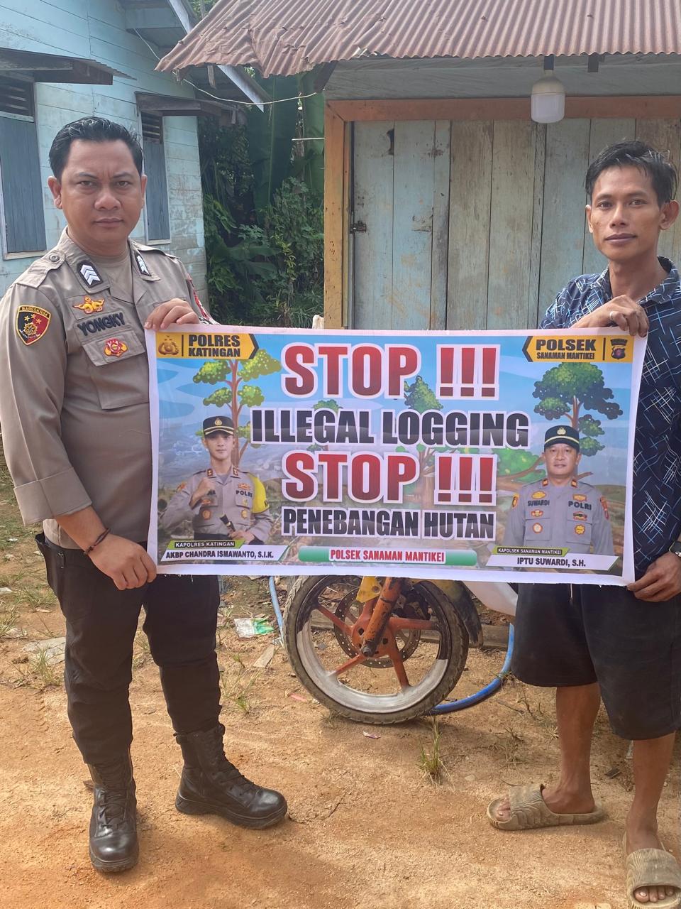 Kapolres Katingan AKBP CHANDRA ISMAWANTO , S.I.K.,melalui Kapolsek Sanaman Mantikei IPTU SUWARDI , S.H menjelaskan kegiatan Bhabinkamtibmas jajaran Polres Katingan dengan cara sosialisasi kepada masyarakat agar mengerti dan memahami tentang larangan dan sangsi bagi pelaku pekerja Ileggal Loging serta mengerti bahwa dampak dan akibat yang di timbulkan akibat Ileggal Loging tersebut.