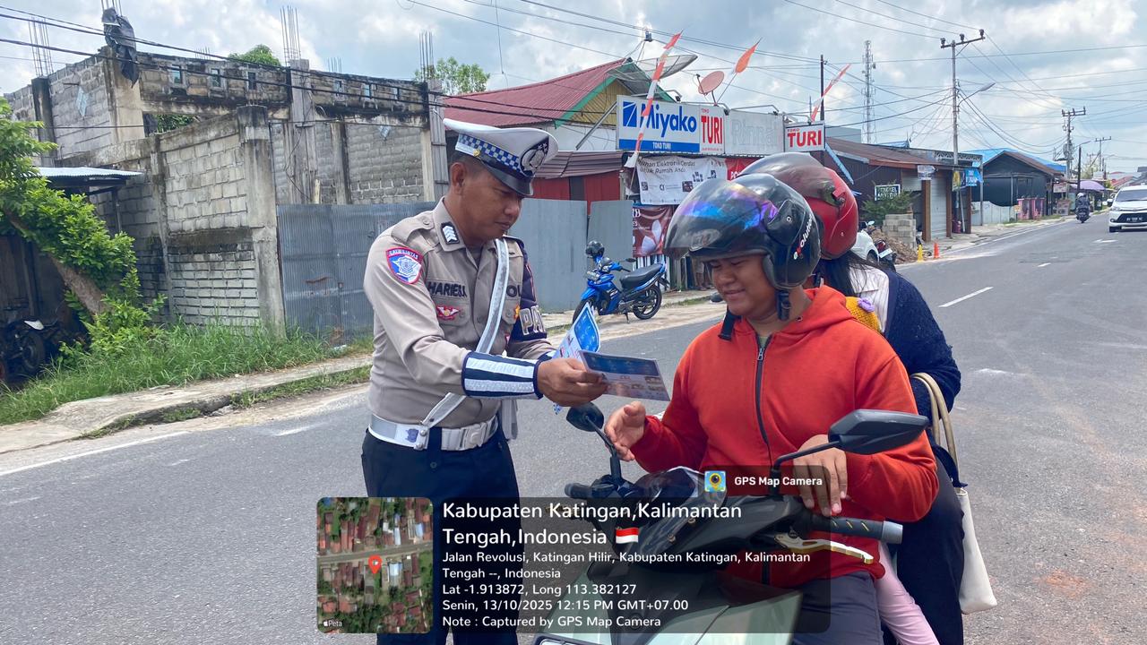 Personil Satlantas Polres Katingan sebagai anggota preemtif bergerak turun ke Jalan untuk meninformasikan kepada pengendara melalui pembagian brosur, untuk menciptakan keamanan dan keselamatan berlalu lintas.