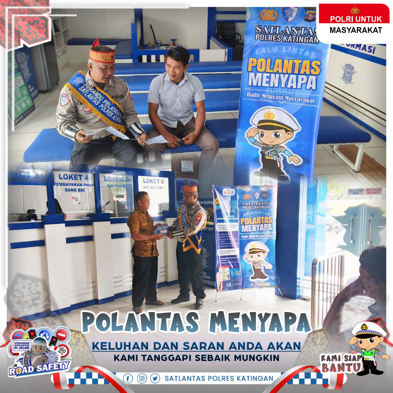 Katingan – Unit Regident Sat Lantas Polres Katingan, jajaran Polda Kalteng giatkan Polantas Menyapa di ruang pelayanan Satpas 2334 Polres Katingan, Senin (13/10/2025) pagi.