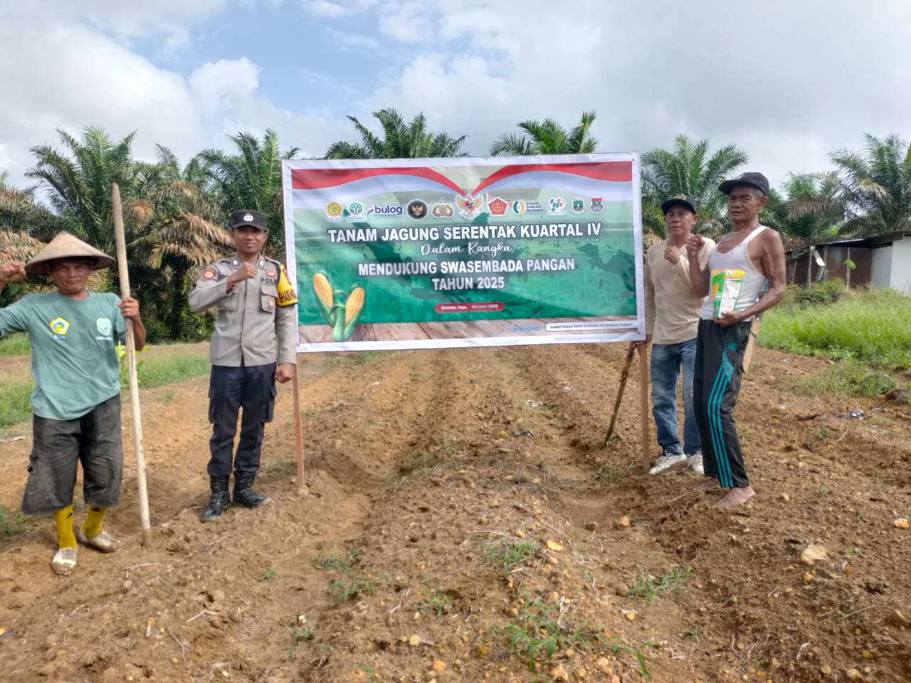 Lamandau — Dalam upaya mendukung program pemerintah menuju swasembada pangan nasional, Bhabinkamtibmas Polsek Sematu Jaya melaksanakan kegiatan Tanam Jagung Kuartal IV Tahun 2025 di wilayah Kecamatan Sematu Jaya, pada hari Jumat (17/10/2025).