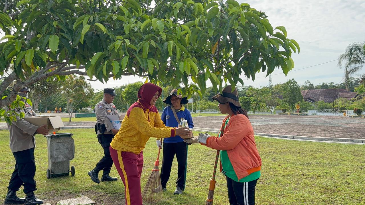 Nanga Bulik — Dalam rangka mempererat kepedulian sosial dan berbagi kebaikan kepada sesama, personel Satuan Pembinaan Masyarakat (Sat Binmas) Polres Lamandau melaksanakan kegiatan “Jumat Berkah” dengan membagikan sebanyak 40 nasi bungkus kepada para petugas kebersihan dan petugas taman di komplek perkantoran Bukit Hibul, Kecamatan Bulik, Kabupaten Lamandau, pada Jumat (24/10/25).