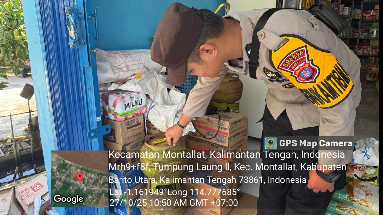 Tribratanews.kalteng.polri.go.id – Polres Barito Utara – Dalam rangka memastikan ketersediaan dan kestabilan harga bahan pokok Gas LPG, Polsek Montallat melaksanakan pengecekan langsung di sejumlah pasar dan toko sembako di wilayah hukum Polsek Montallat, Siang Senin 27 Oktober 2025, Pukul 10.45 Wib.