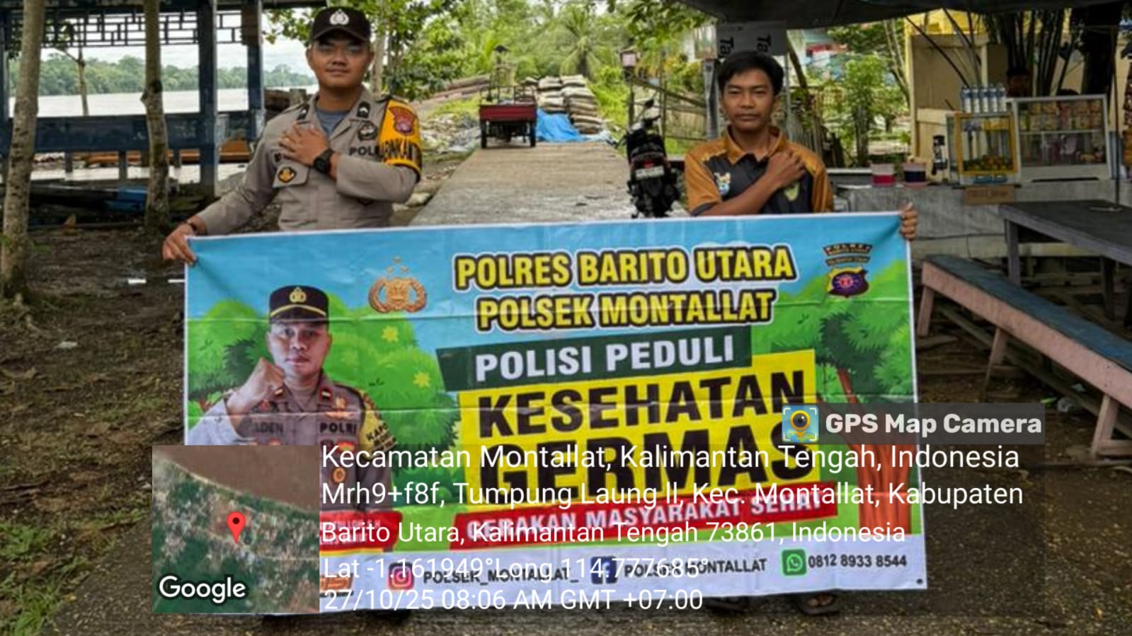 Tribratanews.kalteng.polri.go.id – Polres Barito Utara – Personel Polsek Montallat jajaran Polres Barito Utara, Polda Kalteng melaksanakan Sosialisasi Germas di Kel. Tumpung laung ll Kec. Montallat, Kab. Barito Utara.Senin (27/10/2025) Pagi mulai Pukul 08:00 WIB.