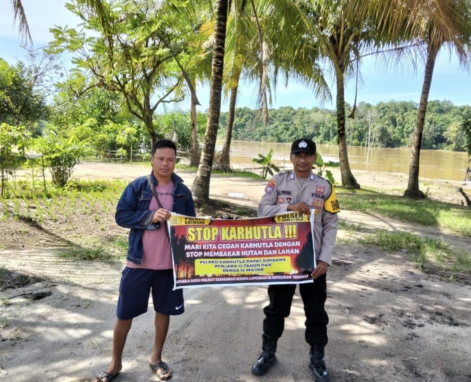 Polres Katingan – Salah satu cara Polsek Tws. Garing dan Pulau Malan, Polres Katingan, Polda Kalimantan Tengah dalam menangani Dampak KARHUTLA, Bhabinkamtias polsek Tws. Garing dan Pulau Malan melaksanakan Sosialisasi STOP!!! KEJAHATAN TERHADAP LINGKUNGAN “DILARANG MEMBAKAR HUTAN DAN LAHAN DI WILKUM POLSEK TWS GARING DAN P. MALAN kepada masyarakat Desa Tewang Baringin Kec. T. S. Garing, Kab. Katingan kegiatan, Selasa (28/10/2025) pagi.