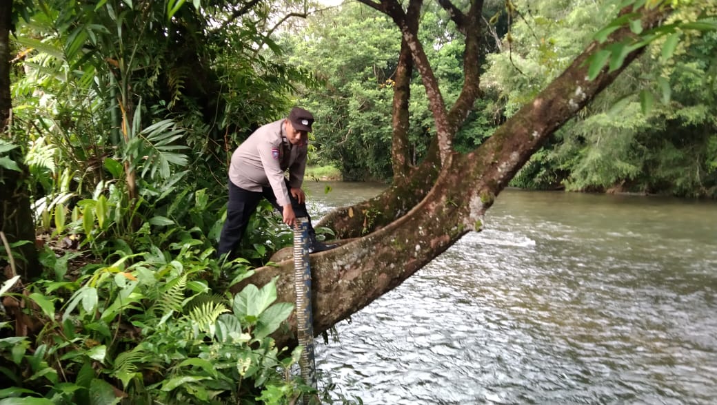 Pengecekan debit air DAS Delang oleh anggota piket Polsek Delang dilakukan secara rutin setiap hari dan saat ini kedalaman air 105 cm pada Level NORMAL 50 cm pada Level NORMAL masih dilevel status aman. (Hms)