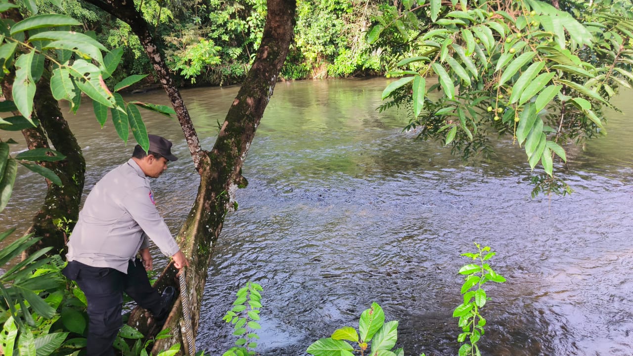 Polres Lamandau – Polsek Delang, Piket Polsek Delang melakukan kegiatan rutin pengecekan debit air DAS Delang di TMA Kelurahan Kudangan RT.02 Kecamatan Delang, Jumat (7/11/25) Pagi