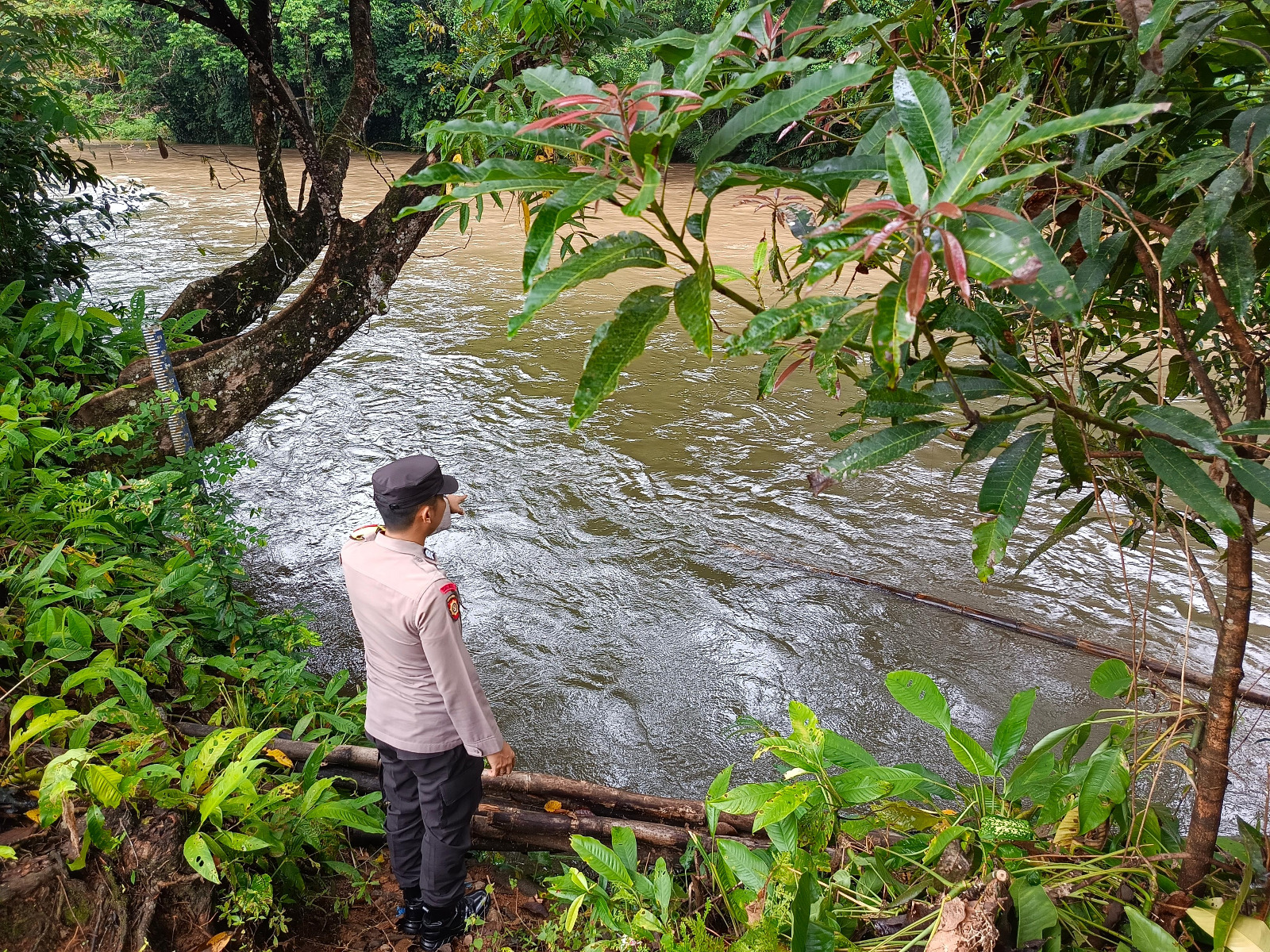 Pengecekan debit air DAS Delang oleh anggota piket Polsek Delang dilakukan secara rutin setiap hari dan saat ini kedalaman air 60 cm pada Level NORMAL mengalami 75 cm pada Level NORMAL mengalami kenaikan 15 cm dilevel status aman. (Hms)