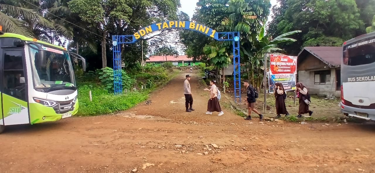Seperti yang terlihat didepan Sekolah SDN 1 tapin bini kecamatan lamandau Brigpol Widyantoni Rajib beserta Bripda Etsa Anggota Jaga tampak tengah melaksanakan pengamanan /pengaturan Siswa Siswi SDN 1 tapin bini tersebut.