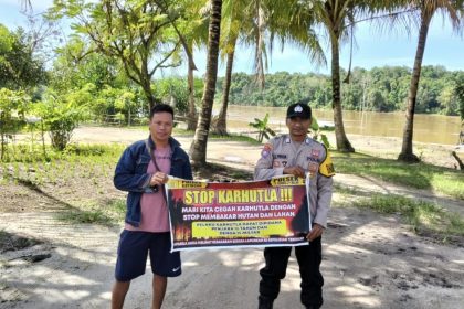 Tribaratanews.kalteng.polri.go.id-Polres Katingan – Salah satu cara Polsek Katingan Hulu, Polres Katingan, Polda Kalimantan Tengah dalam menangani Dampak KARHUTLA, Bhabinkamtias Brigpol Ulberto ...