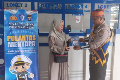 Polres Katingan – Salah satu cara Mewujudkan Kamseltibcarlantas Personil Satlantas Polres Katingan Membagikan Brosur Kepada Masyarakat Sembari Berikan Pesan Kamseltibcarlantas kepada pengguna ja...