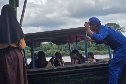 M Teweh- Personel Ditpolairud Polda Kalteng yang bertugas di DAS Barito melaksanakan kegiatan sambang ke motoris yang membawa anak sekolah untuk memberikan himbauan dan edukasi tentang pentingnya kele...