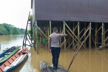 Polres Katingan- Mendeteksi potensi bencana banjir, Bhabinkamtibmas Desa Tumbang Mahop Polsek Katingan Hulu dan Bukit Raya, Polres Katingan, Polda Kalteng Brigpol Ulberto tumalatoni melakukan pemant...