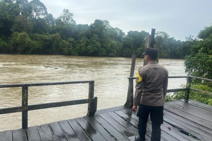 Polres Lamandau – Personel Polsek Lamandau Melaksanakan Patroli dan Pantau Cek debit air Sungai Lamandau Antisipasi terjadinya Bencana banjir di Wilayah Kabupaten Lamandau Khususnya Kecamatan La...