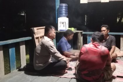 Polres lamandau – Bhabinkamtibmas Brigpol Alexander Tarigan Polsek Sematu Jaya, Menyambangi Piket jaga sat kamling Desa Bukit Raya, kec. Menthobi Raya Kab. Lamandau, Prov. Kalteng yang sedang ja...