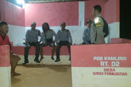 Polres lamandau – Bhabinkamtibmas Bripka Kingcau Polsek Bulik, Menyambangi Piket jaga sat kamling Desa Nanga Pamalontian, Kec. Bulik, Kab. Lamandau, Prov. Kalteng yang sedang jaga pos kampling, ...