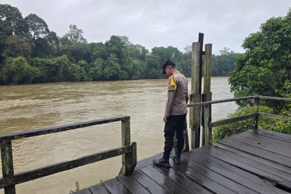 Polres Lamandau – Personel Polsek Lamandau Melaksanakan Patroli dan Pantau Cek debit air Sungai Lamandau Antisipasi terjadinya Bencana banjir di Wilayah Kabupaten Lamandau Khususnya Kecamatan La...