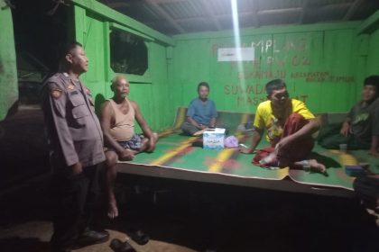 Polres lamandau – Bhabinkamtibmas Bripka Langgeng S. Polsek Bulik, Menyambangi Piket jaga sat kamling Desa Suka Maju, Kec. Bulik Timur, Kabupaten Lamandau. Prov Kalteng yang sedang jaga pos kamp...