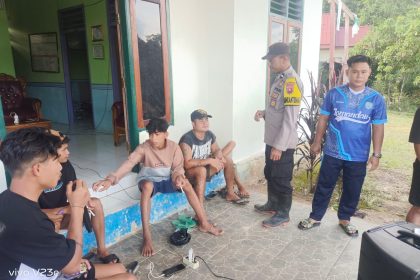 Polres lamandau – Bhabinkamtibmas Bripda Garin Andrean Dewantara Polsek Sematu Jaya, Menyambangi Piket jaga sat kamling Desa Nanuah, Kec. Menthobi Raya, Kab. Lamandau, Prov. Kalteng yang sedang ...