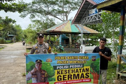 Polres Barito Utara – Personel Polsek Montallat jajaran Polres Barito Utara, Polda Kalteng melaksanakan Sosialisasi Germas di Kel. Tumpung laung ll Kec. Montallat, Kab. Barito Utara.Jum’at (19/0...