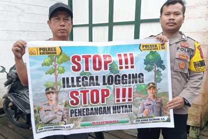 Polda Kalteng – Polres Katingan – Personel Bhabinkamtibmas Polsek Katingan Hulu dan Bukit raya Brigpol Reaynold B. Butar-Butar melaksanakan sosialisasi tentang larangan terhadap pelaku Ilegal M...