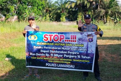 Lamandau — Personel Bhabinkamtibmas Polsek Sematu Jaya, Brigpol Imron Rasyidi, melaksanakan kegiatan sambang dan himbauan pencegahan kebakaran hutan dan lahan (karhutla) kepada warga Desa Mukti Manung...