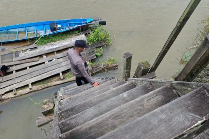 Polres Lamandau – Personel Polsek Lamandau Melaksanakan Patroli dan Pantau Cek debit air Sungai Lamandau Antisipasi terjadinya Bencana banjir di Wilayah Kabupaten Lamandau Khususnya Kecamatan La...