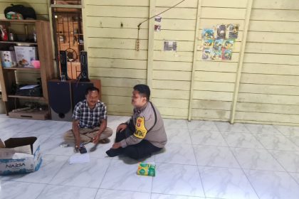 Lamandau – Personil Bhabinkamtibmas Brigpol Chandra Tri Prayoga Polsek Delang melaksanakan sambang ke Rumah masyarakat di Warga Masyarakat Warga Desa Riam Tinggi, Kec. Delang, Kab. Lamandau Prov. Kalt...